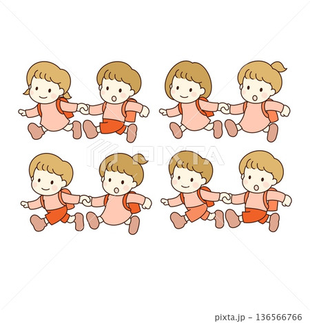 插圖描繪了兩個小學生手牽手,是好朋友,正在上下學途中。