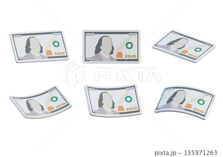 Single 100 US dollar banknote in cartoon 3D style