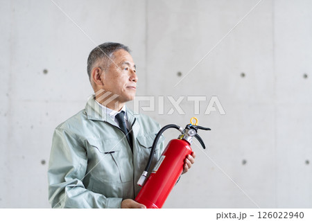 有滅火器的男性工人