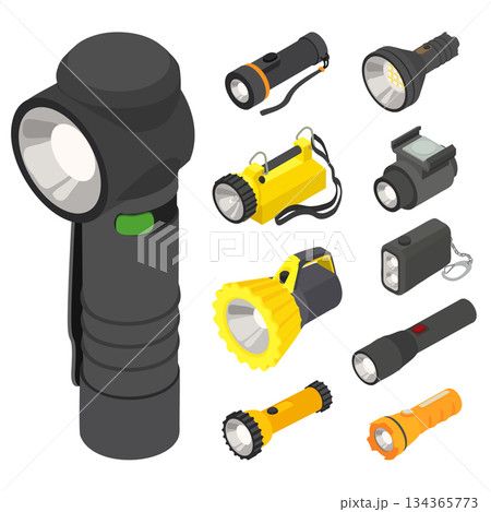 Flashlight icons set, isometric style