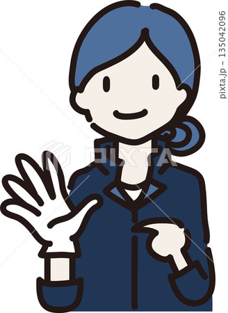 圖:一名戴著手套、身穿藏藍色制服的女工人正在提醒人們注意穿著。