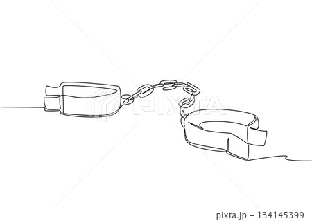 Continuous one line drawing open ball chain shackle. Such a dark past. Made a slave. Valuable lesson so it won't happen again. Only benefits the ruler. Single line draw design vector illustration