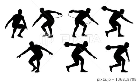 Black Solid Discus Thrower Ground Force Application Silhouettes Set of Six on White Background