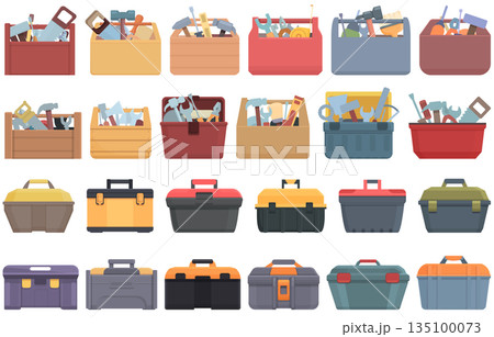 Toolbox icons set cartoon vector. Tool equipment