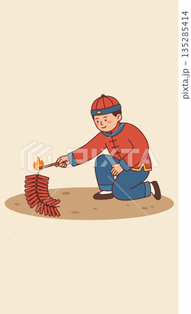 Boy Lighting Firecrackers for Chinese New Year