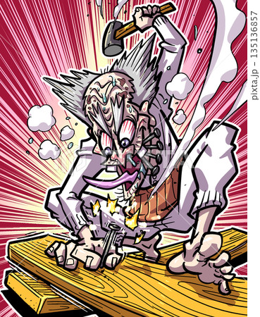 一幅描繪一位熱愛DIY的古怪老人的插圖