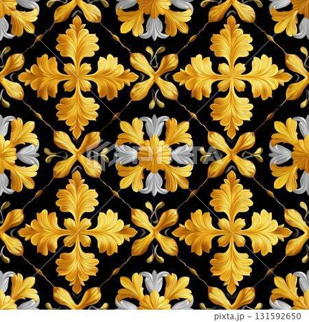 Seamless Golden Abstract Geometric Pattern with Stylized Elements on Black Background