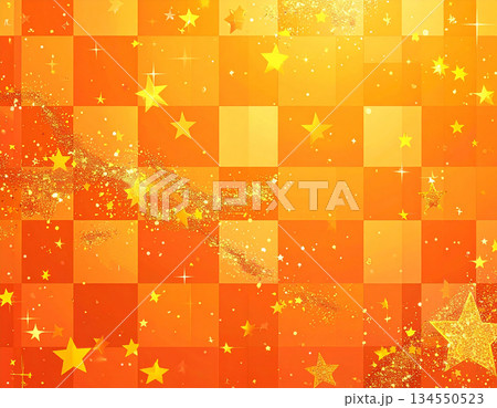 手繪方格瓷磚背景,搭配清新的橙色和星星圖案。