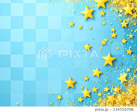 以手繪方格圖案為背景,搭配清新的淺藍色和星星圖案。