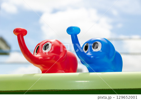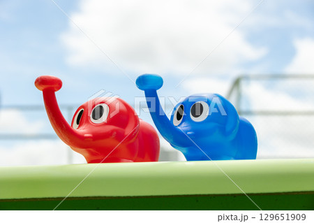 藍色和紅色的大象噴壺