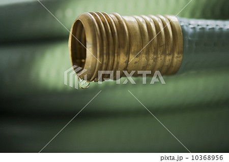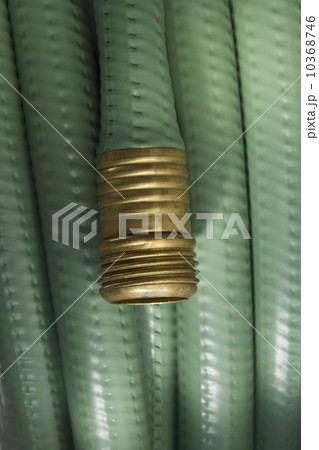 Closeup of wound up garden hose