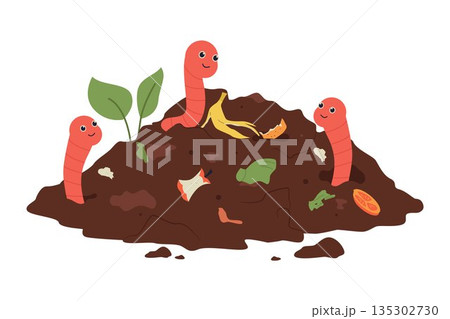 Vermicomposting Process with Earthworms and Organic Matter Illustration