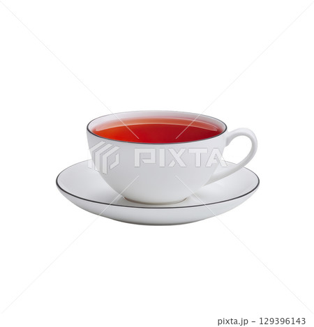 White porcelain teacup filled with vibrant red tea sits elegantly on matching saucer, showcasing minimalist and classic design