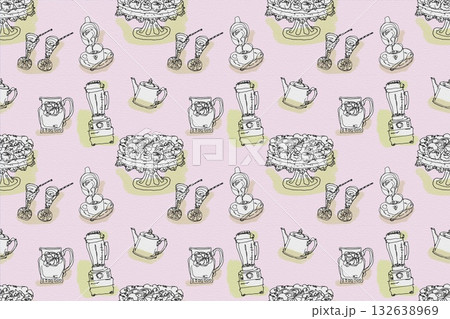 Doodle sketch illustration of kitchenware and botanical elements in vector format