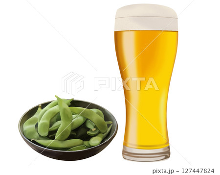 關東煮和生啤酒晚間飲品設置水彩插圖
