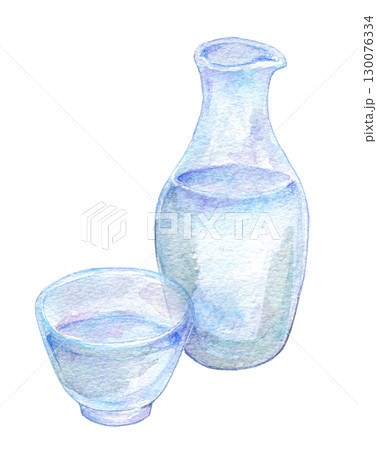 玻璃杯和水壺的水彩插圖(剪切素材)