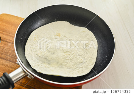 Scene of frying pancakes in a frying pan