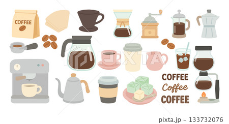 Coffee brewing equipment cafe tools symbol cartoon flat illustration grinding machine espresso maker