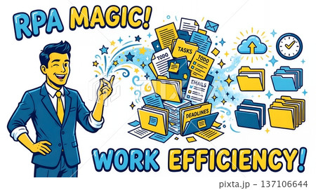 插圖描繪了一位能夠神奇地處理任務並提高工作效率的商務人士。