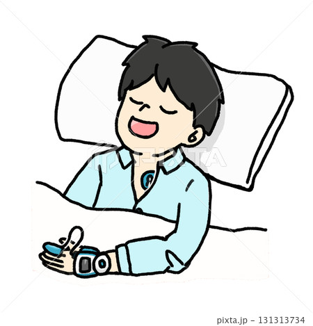 一名男子佩戴睡眠呼吸中止症 (SAS) 裝置的插圖(彩色)