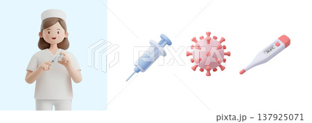 身穿白大褂的醫生,身穿手術服的護士,醫療用品/簡約色彩/套裝