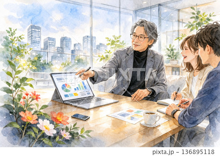 一位資深創意顧問在玻璃牆會議室指導一位年輕的創意團隊成員(指導/橫向)
