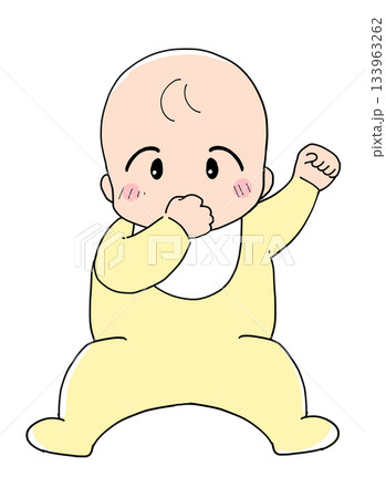 哭泣、兒童、嬰兒、撥浪鼓、玩具、繪本、奶嘴、墊子上的線條畫