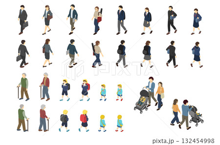 父母和孩子去托兒所/幼兒園的插圖集(早晨準備/上學場景)