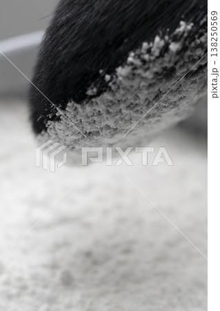 女人的手在化妝;她的手在撲粉。