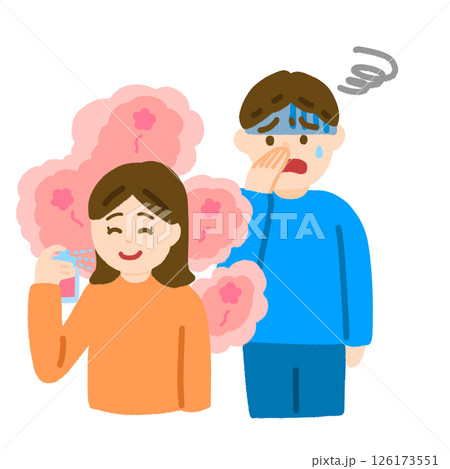 一名男子摀住鼻子,一名女子咳嗽的插圖