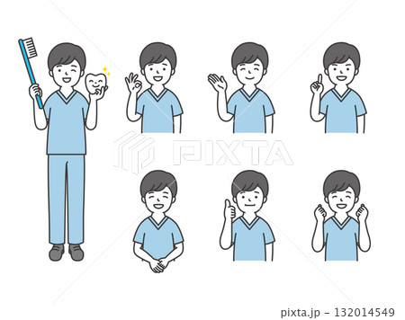 牙醫師(牙醫師)指導刷牙的插圖影像