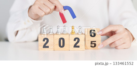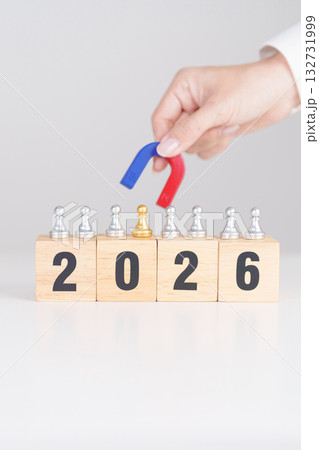 hand holding magnet over 2026 Year block. Human resource management, Recruitment, Teamwork, strategy, toxic people and leadership Concepts