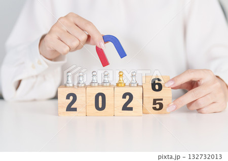 hand holding magnet and pulling man chess figure from the crowd employee with 2026 Year block. Human resource management, Recruitment, Teamwork, strategy, toxic people and leadership Concepts