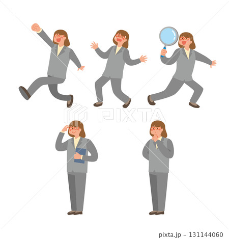 插圖集:一位身穿西裝的男士透過臉部表情和姿勢表達情緒