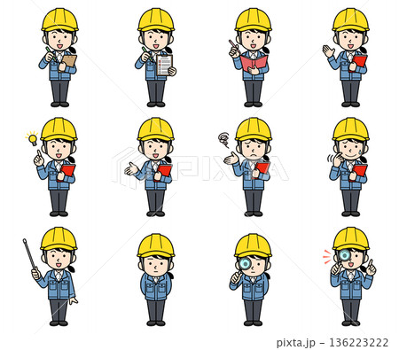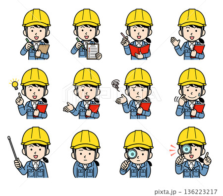 簡單插圖穿著工作服、戴著頭盔的婦女的變化角色集