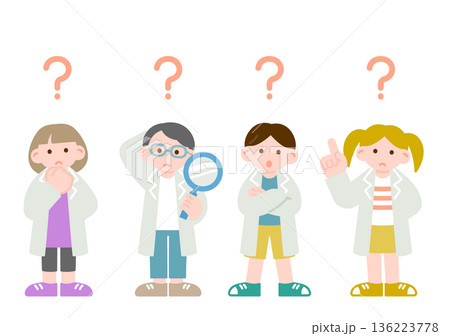孩子們自己研究和尋找答案:時尚可愛的線條藝術插圖