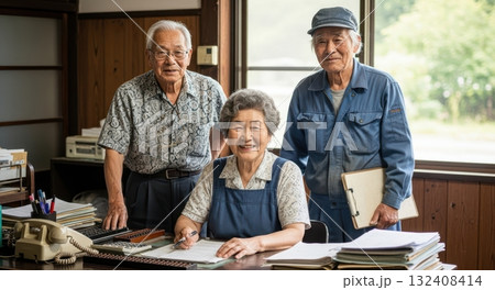 在小型企業裡微笑的老年員工