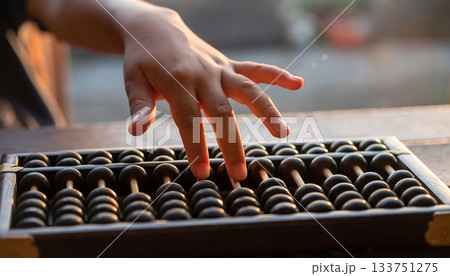 女人的手正在使用算盤