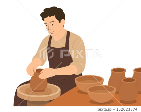 3D Isometric Flat Conceptual Illustration of Pottery Making, Ceramic Craft Master