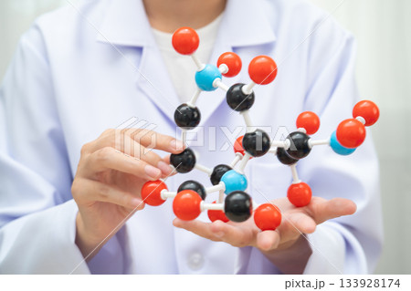 DNA molecule testing concepts. The doctor in a mask examines DNA molecules on the chemical laboratory