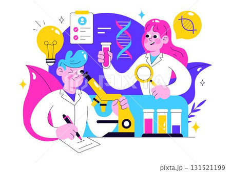 Genetics Testing Illustration Featuring DNA Molecule Structure, Scientific Research, and Laboratory Experiment with Scientists in a Technological