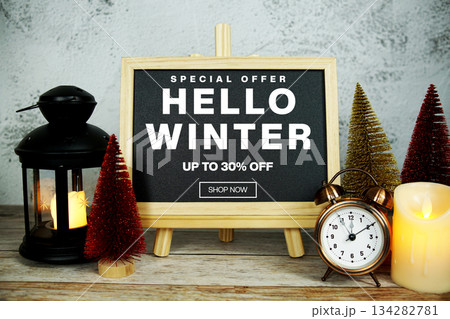 Hello Winter Sale 30% off Promotion Offer Discount Retail Shopping Concept