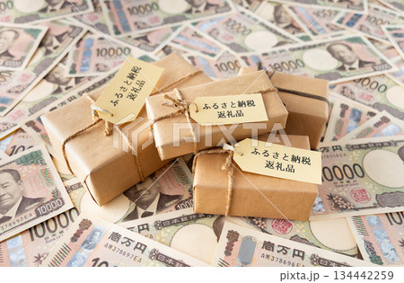 家鄉退稅禮物和10000日元鈔票 家鄉稅捐贈