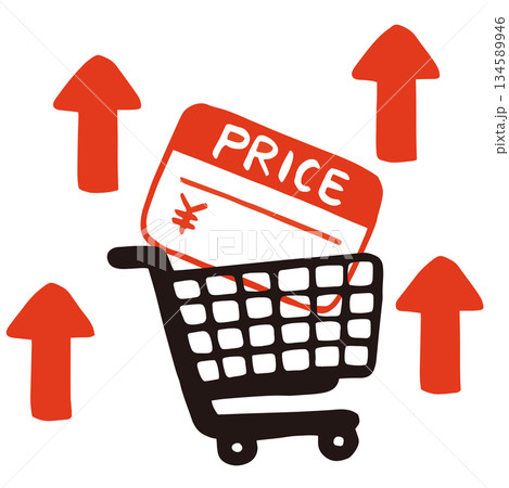 價格標籤和向上箭頭的向量圖 | 物價上漲、通貨膨脹、材料價格上漲