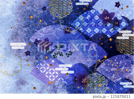 水彩風格的日本圖案和一隻面朝前方的長尾山雀的插圖