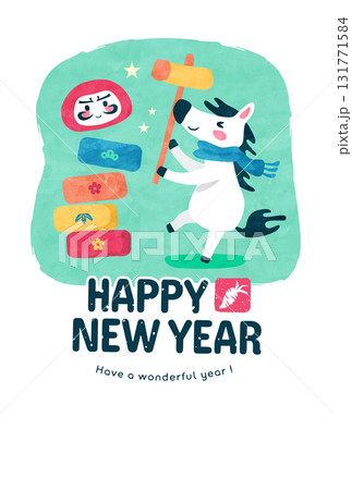 新年賀卡(馬年)馬玩耍達摩大歲冬季可愛模板