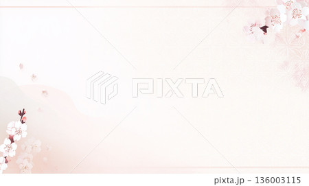 優雅的日式背景框,櫻花飄落 | 淺色漸層設計,非常適合春季問候和活動