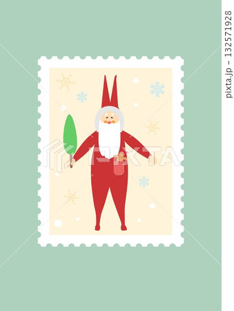 聖誕老人和馴鹿郵票郵件紅色插圖向量圖