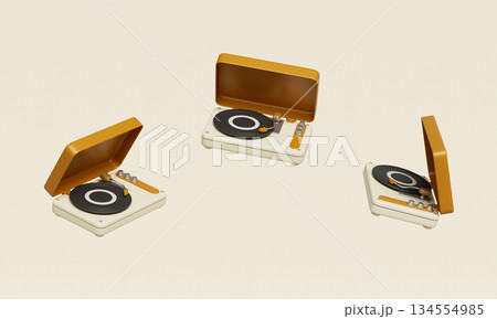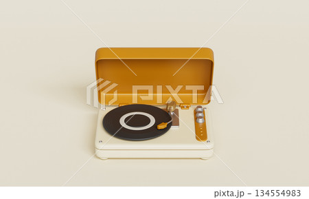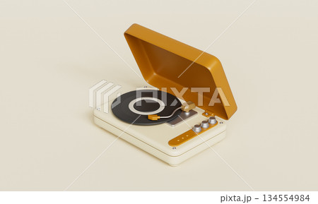 Retro Turntable with Vinyl Record. 3D Rendering.