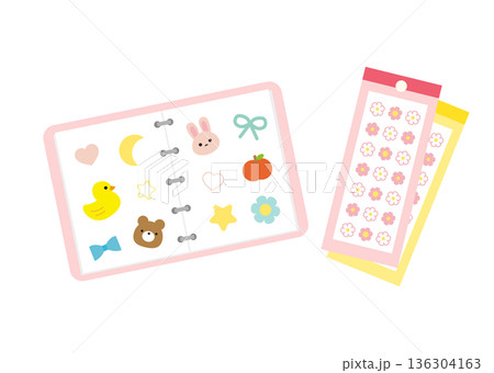 打開的活頁夾,貼紙書,粉紅色